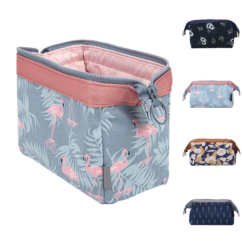 Fashion Flamingo Flower Print Makeup Brushes Holder Bag Pouch