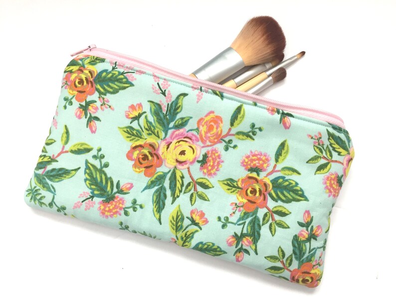 Blue Floral Makeup Brush Pouch Turquoise Organizer Floral Etsy