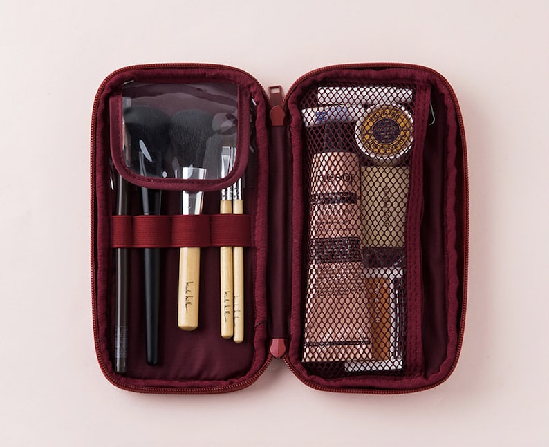 Pockets Makeup Brush Bags Holder Women Cosmetic Bag Organizer Pink
