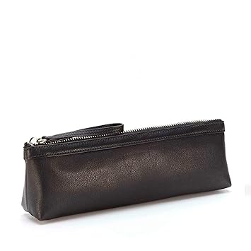 Makeup Brush Pouch Full Grain Leather Black Onyx Black