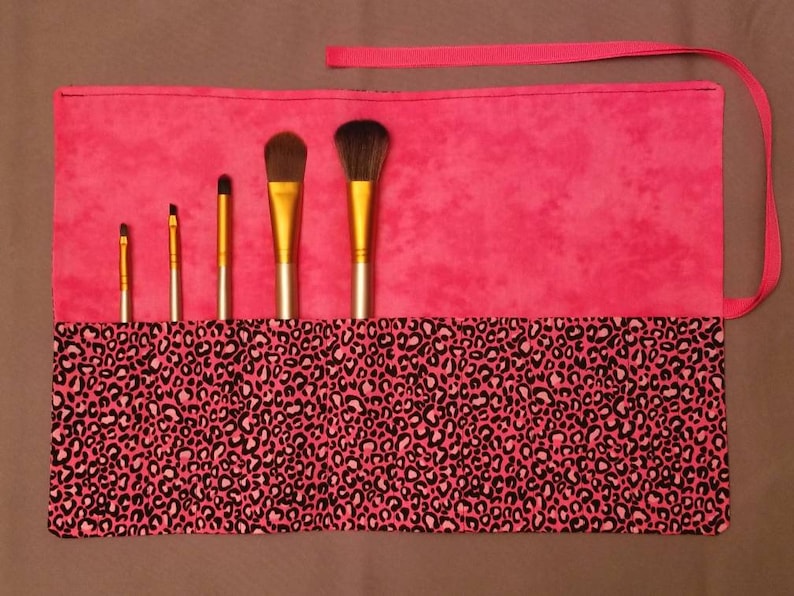 Pink And Black Leopard Print Makeup Brush Roll Makeup Brush Etsy