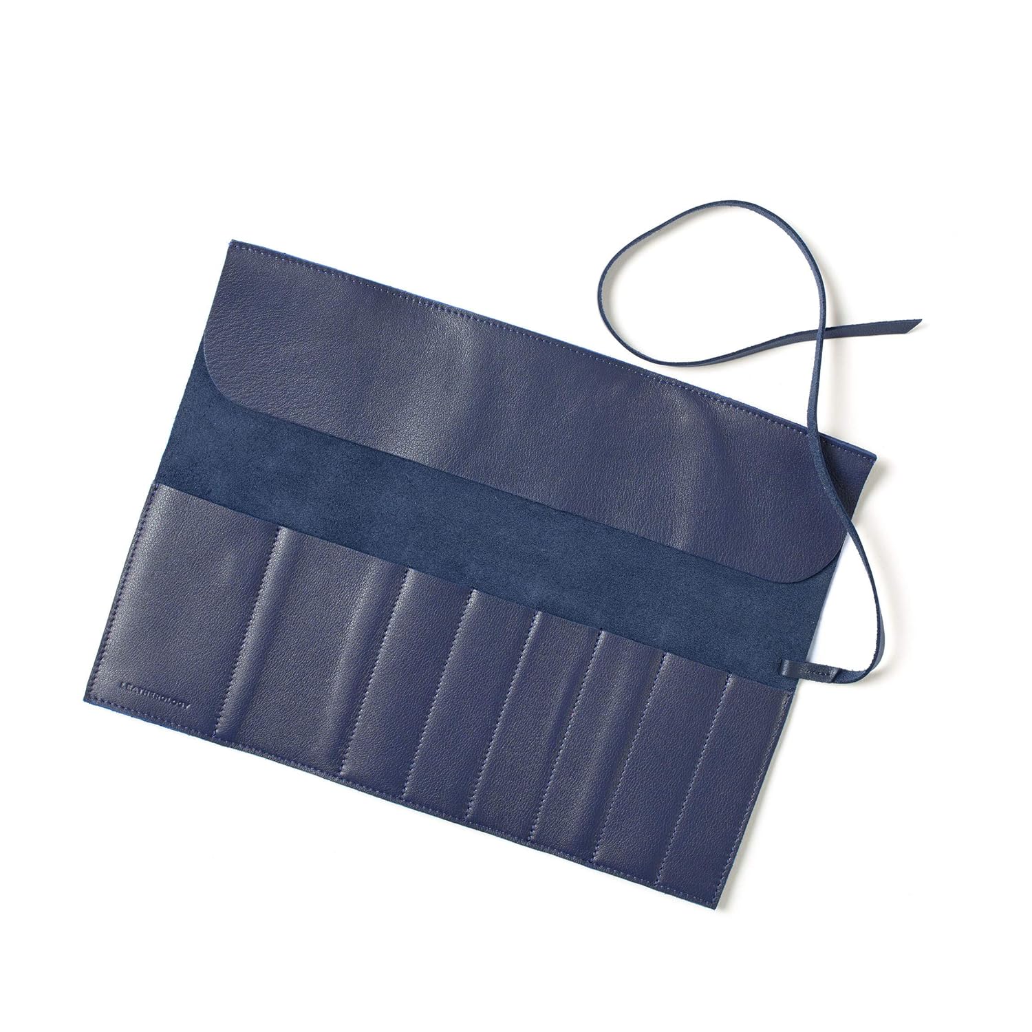 Large Makeup Brush Roll Full Grain Leather Black Onyx