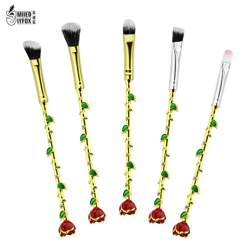 5 Styles Rose Flower Makeup Brushes Set Synthetic Hair Professional