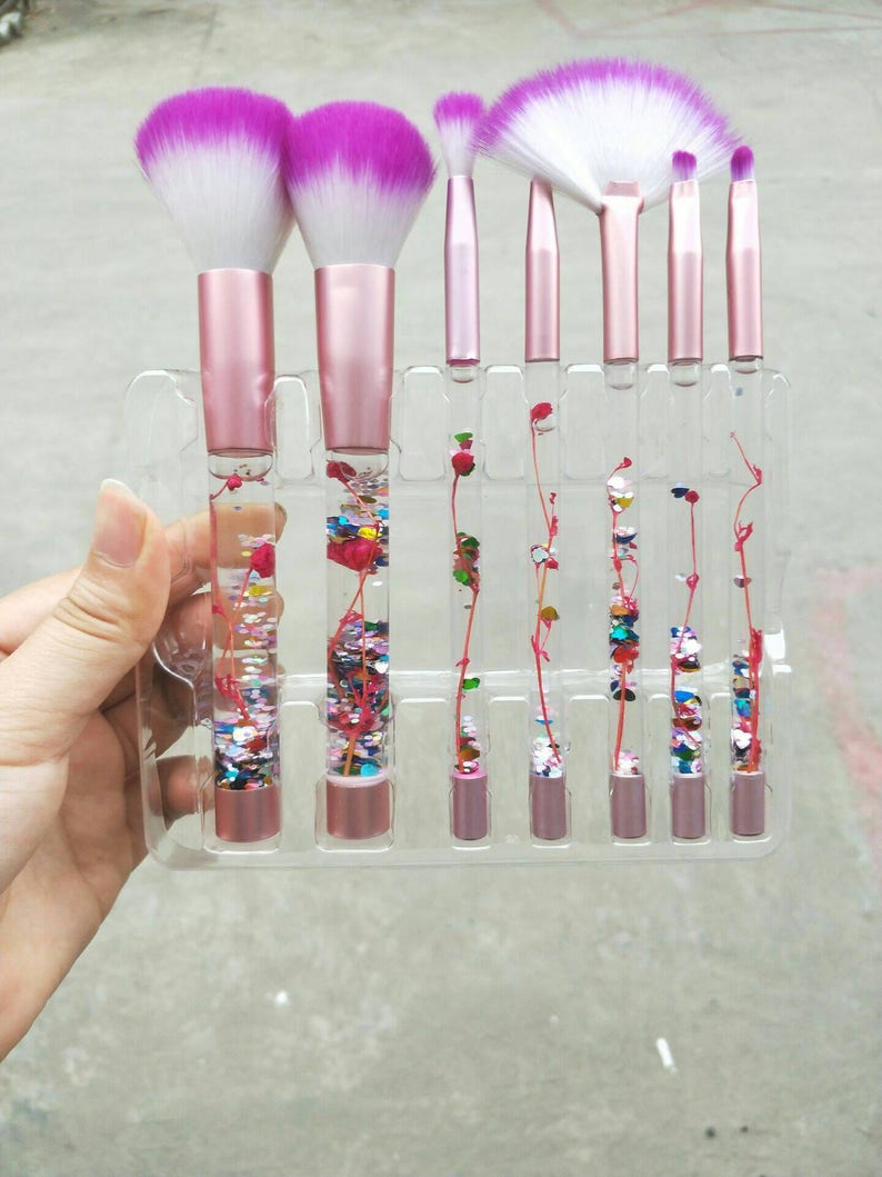 7pcs Makeup Brush Set Liquid With Flower Rose Handle Cosmetics Etsy