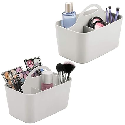 Mdesign Plastic Makeup Storage Organizer Caddy Tote Divided Basket Bin Handle For Bathroom Holds Eyeshadow Palettes Nail Polish Makeup Brushes