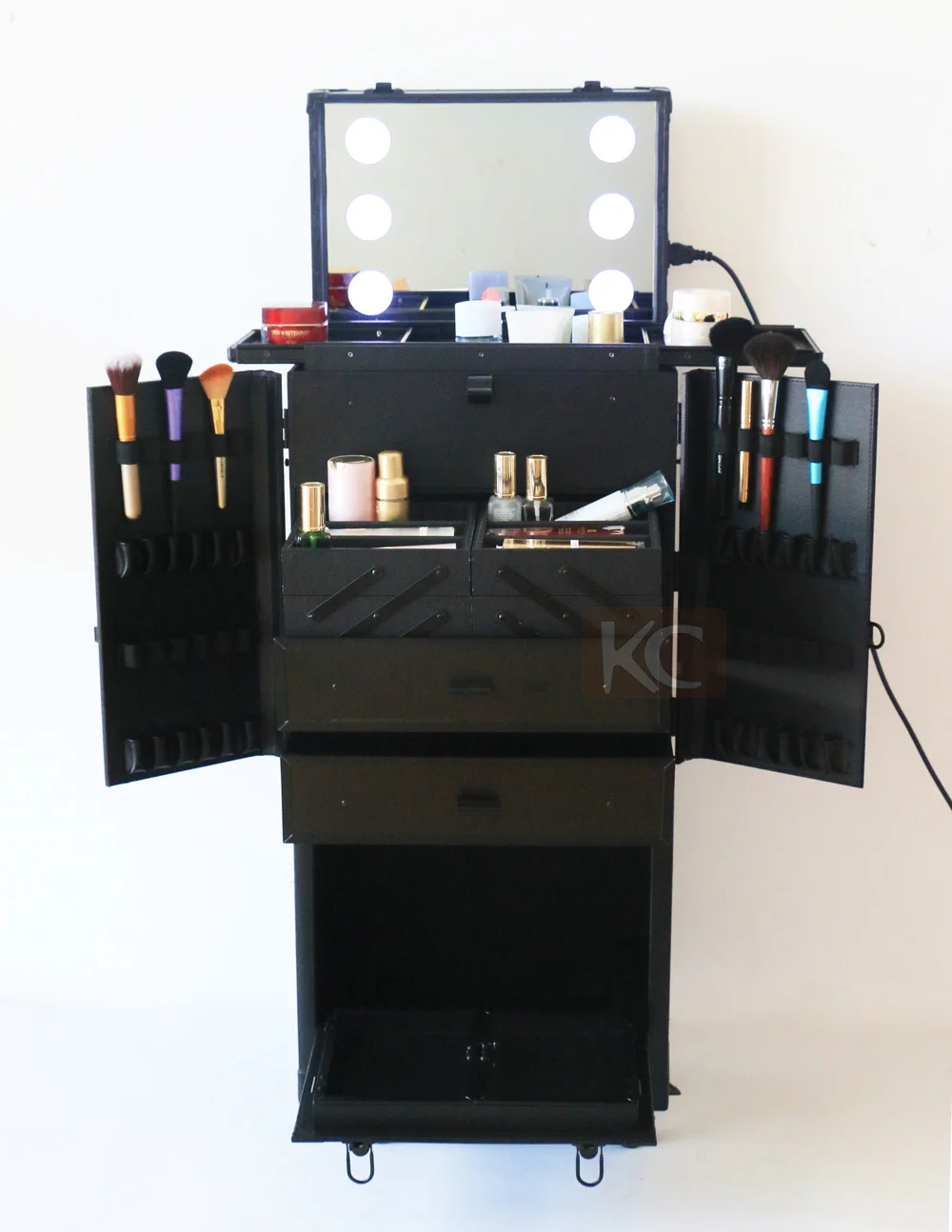 Professional Rolling Makeup Case With French Doors 2 Wheels 4