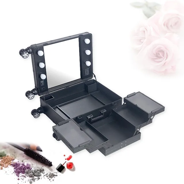 Professional Rolling Studio Makeup Case With Led Lights Makeup Train