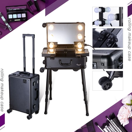Aw Lockable Rolling Makeup Case W Led Lights Studio Cosmetic