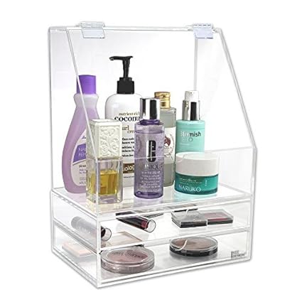 Ikee Design Acrylic Makeup Cosmetic Organizer Storage Case Holder Display With Slanted Front Open Lid For Makeup Brushes Perfumes Skincare And