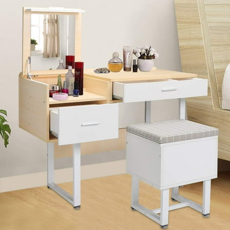 Tribesigns Wood Makeup Vanity Table Set With 3 Mirror Stool