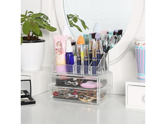 Elecmall 2 Tiers Acrylic Makeup Cosmetic Drawers Grids Display