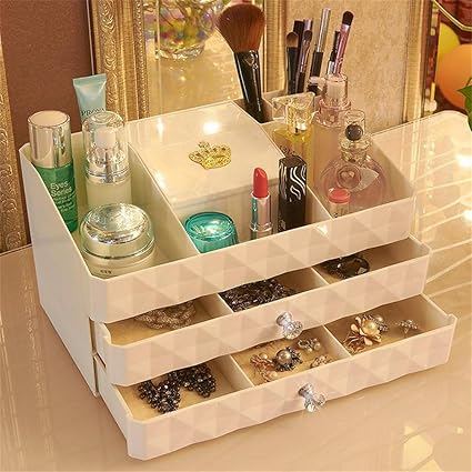 Acevivi Acrylic Clear Makeup Cosmetic Drawers Grids 3 Tiers Display