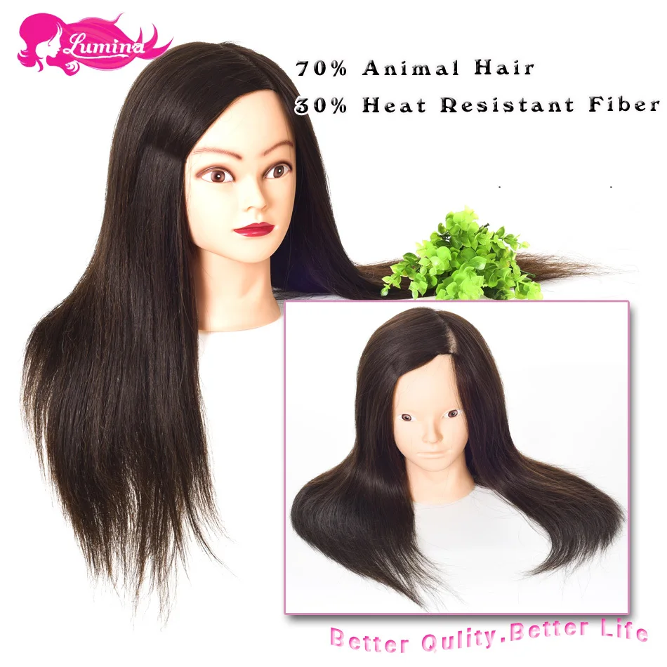 2018 Mannequin Head Hair Brown Training Head Maniqui Hairdressing Doll Heads Hairdresser Manik Heat Resistant Animal Hair Makeup
