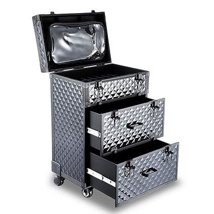 Amazon Com Ascase Rolling Trolley Makeup Train Case Aluminum