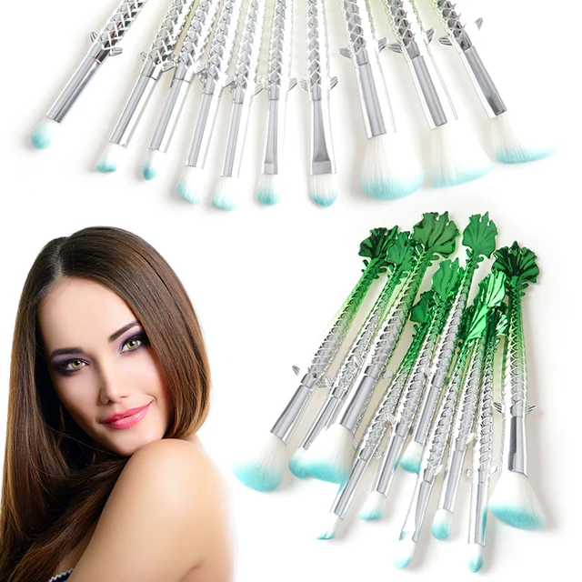 Professional 10pcs Sets Green Silver Makeup Brush Happy Fish Eye