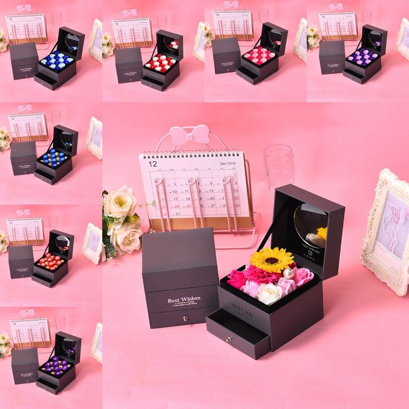 Soap Rose Flower Double Drawer Wood Necklace Gift Box Girl Valentine