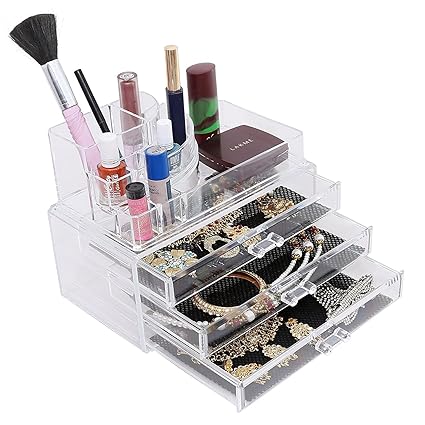 Inovera 4 Drawer Cosmetic Makeup Jewellery Storage Organiser Box Cosmetic Organiser Vanity Box