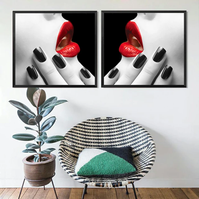 Beauty Makeup Wall Decor Painting Beauty Salon Colored Red Lips