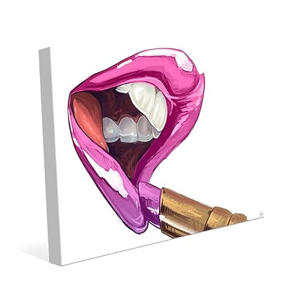 2019 Modern Fashion Girl Makeup Pink Lips Art Canvas Painting