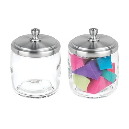Amazon Com Mdesign Bathroom Vanity Glass Storage Organizer Canister