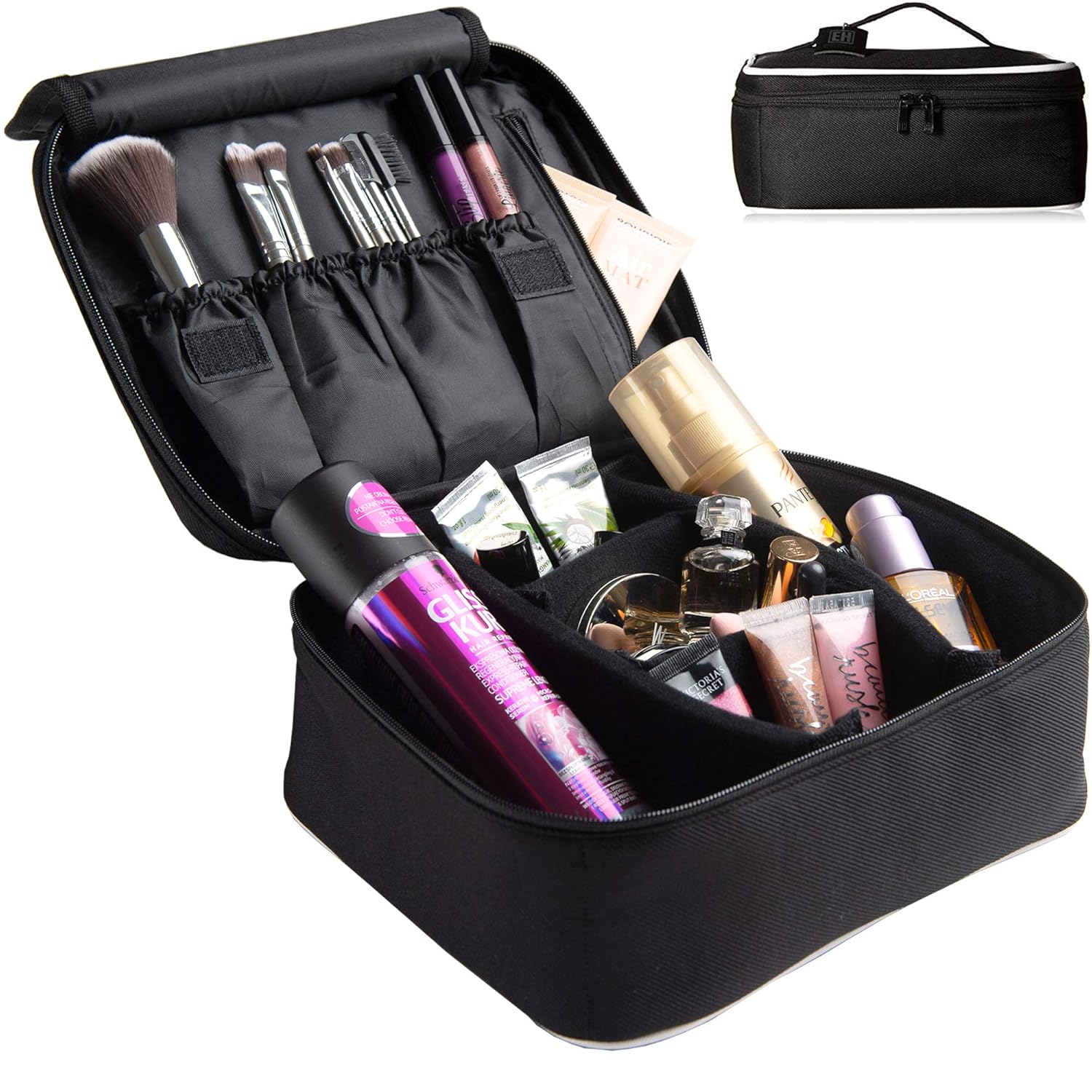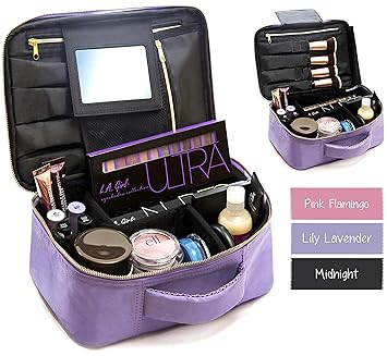 Amazon Com Travel Makeup Bag With Mirror Adjustable Dividers