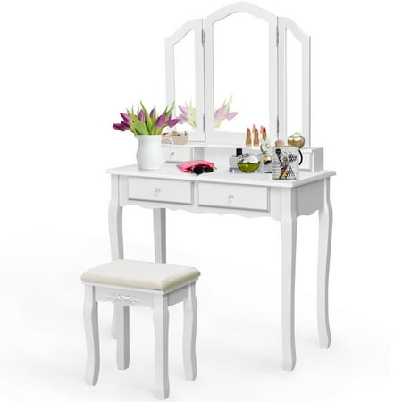 Goplus Tri Folding Mirror Vanity Makeup Table Stool Set Home Furni W