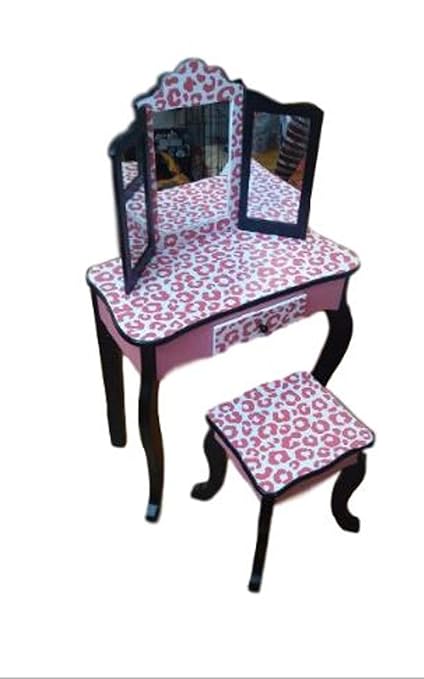 Teamson Kids Vanity Table And Stool Set In Black And Pink Leopard