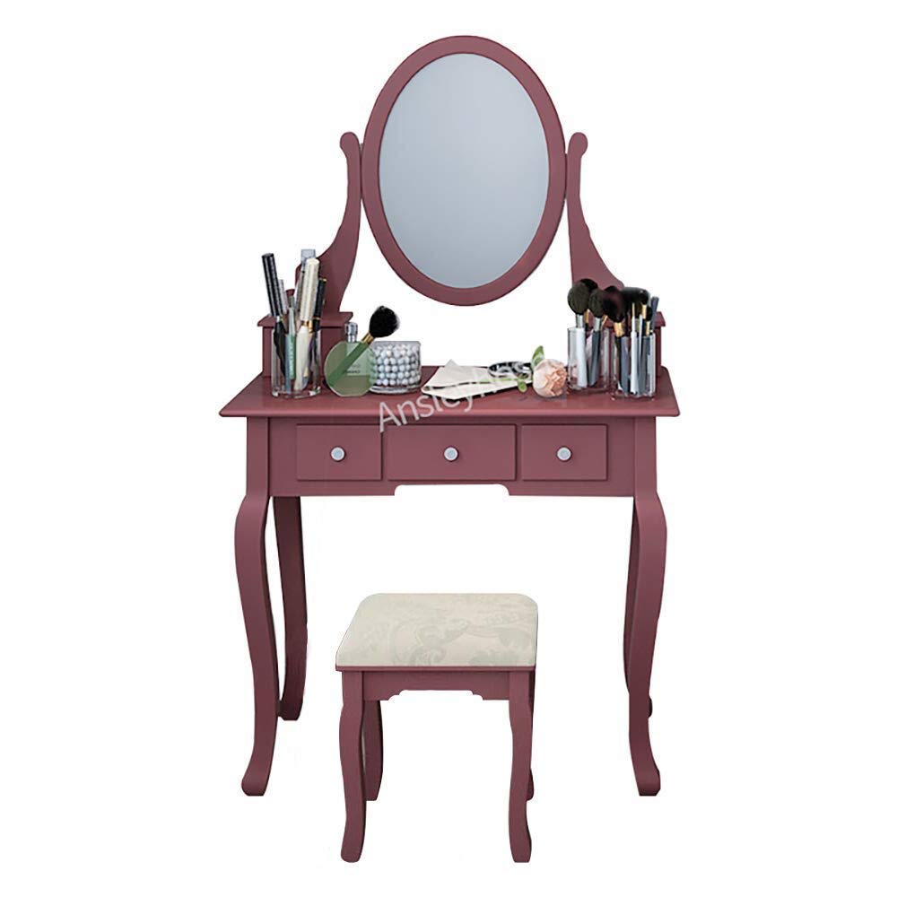Makeup table size. May be completed with a wall or table mirror in a size and style that you like. Whatever place you choose it should be one that can provide you with sufficient space that you need. A typical makeup dresser consists of the actual vanity and a mirror along with a bench or stool. A three way mirror lets you review your hair and makeup from every angle.
