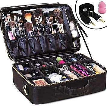 Amazon Com Monstina Large Capacity Makeup Case 3 Layers Cosmetic