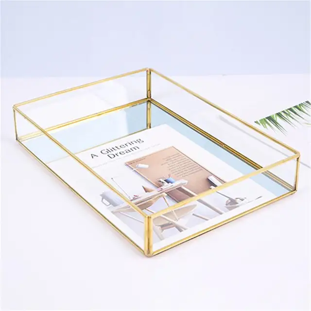 Nordic Retro Brass Storage Tray Golden Rectangle Glass Makeup