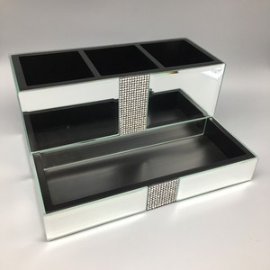 Bella Lux Mirror Rhinestone Organizer Divided Makeup Tray Vanity