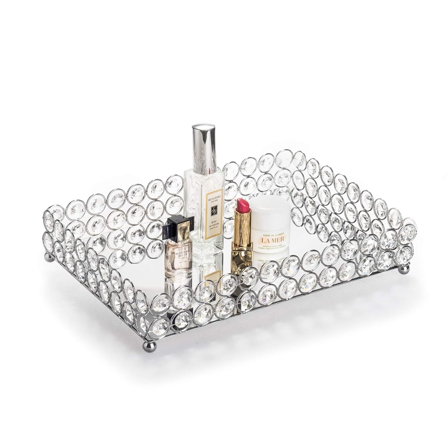 Amazon Com Feyarl Mirrored Crystal Vanity Makeup Tray Ornate