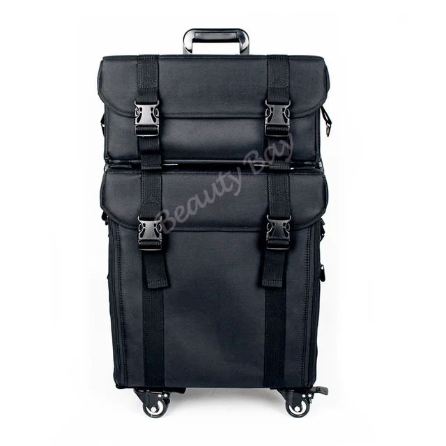 2in1 Nylon Makeup Trolley Bag Case With 4 Pcs Rolling Wheels