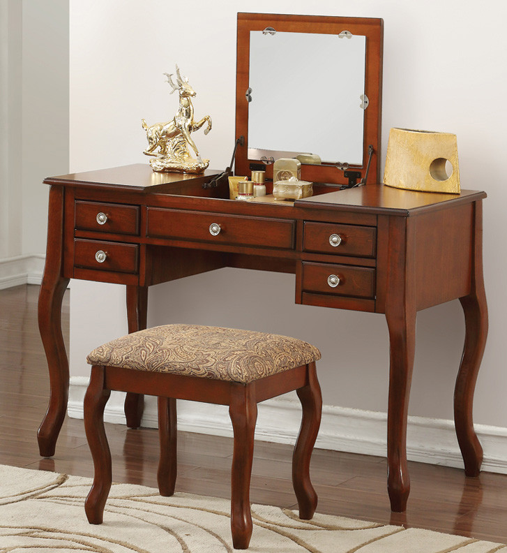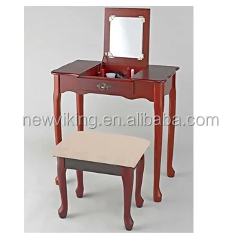 Bedroom Furniture Flip Top Mirror Table And Stool Vanity Dresser Set