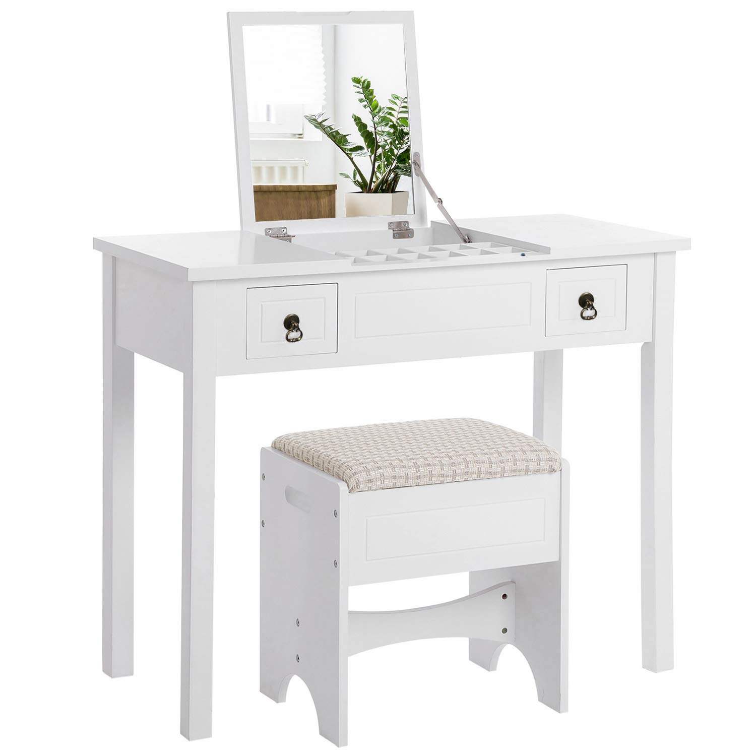 Amazon Com Honbay Makeup Vanity Table Set With Flip Top Mirror