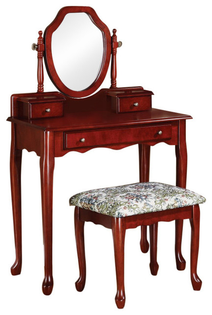 2 Piece Makeup Vanity Set With Mirror Reddish Brown Traditional