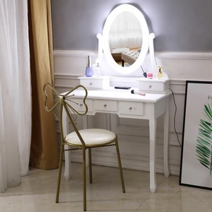 White Led Lighted Mirror Vanity Makeup Dressing Table Stool Set 3