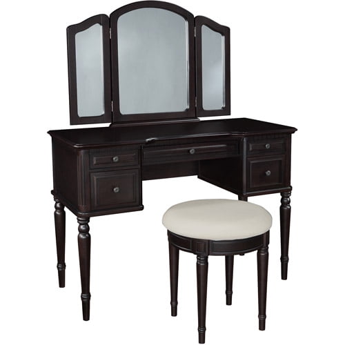 Classic Vanity With Tri Fold Mirror And Bench Espresso Walmart Com