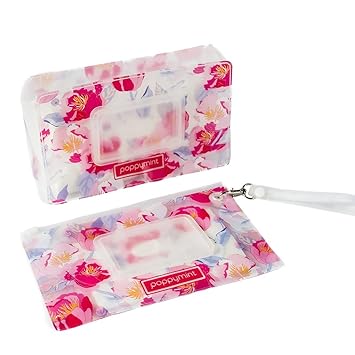 Poppymint Baby Wipe Pouch Pink Floral Set Of 2 Reusable Wipes