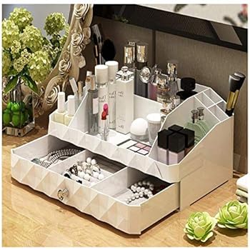 Get it as soon as tue jun 18. Free shipping on orders over 25 shipped by amazon. Mantello makeup organizer vanity organizer with drawers white approximate exterior dimensions. Keeps makeup cosmetic personal care items and more within easy reach 9 compartments including two drawers separate and organize your brushes bottles cosmetics and more multi purpose use.