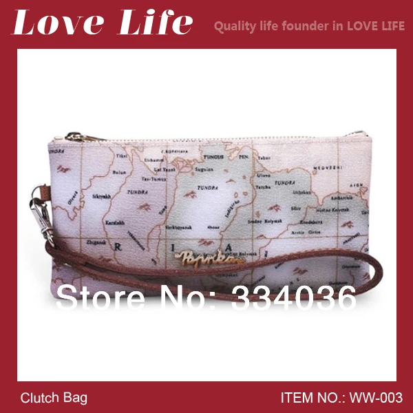 Free Shipping Paprika Women Map Clutches Makeup Bag Russia Map Long