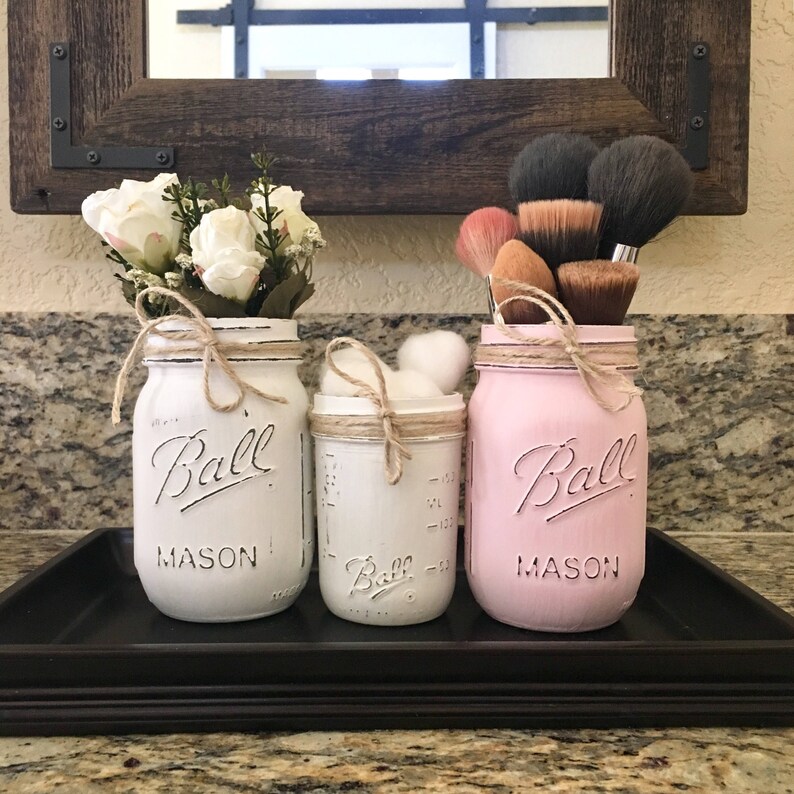Mason Jar Decor Bathroom Organizer For Toothbrush Q Tips Makeup
