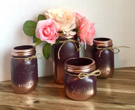 Rose Gold And Burgundy Mason Jars Makeup Brush Holder Etsy