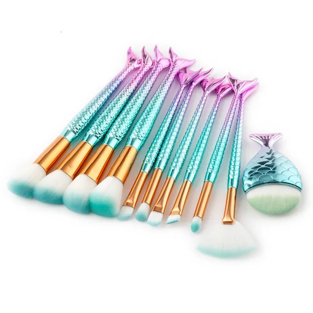 China 2018 New Arrival 10pcs Mermaid Fish Makeup Brush Set China