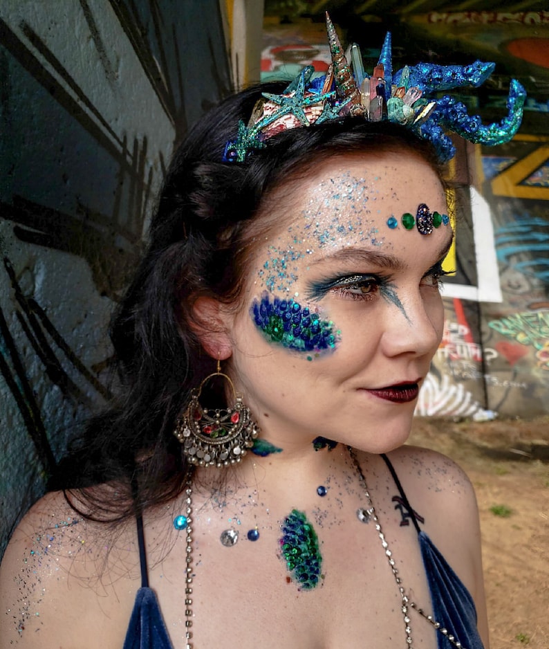 Halloween Makeup Mermaid Fish Scales Gold Blue Kostume Halloween