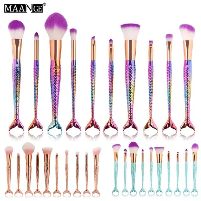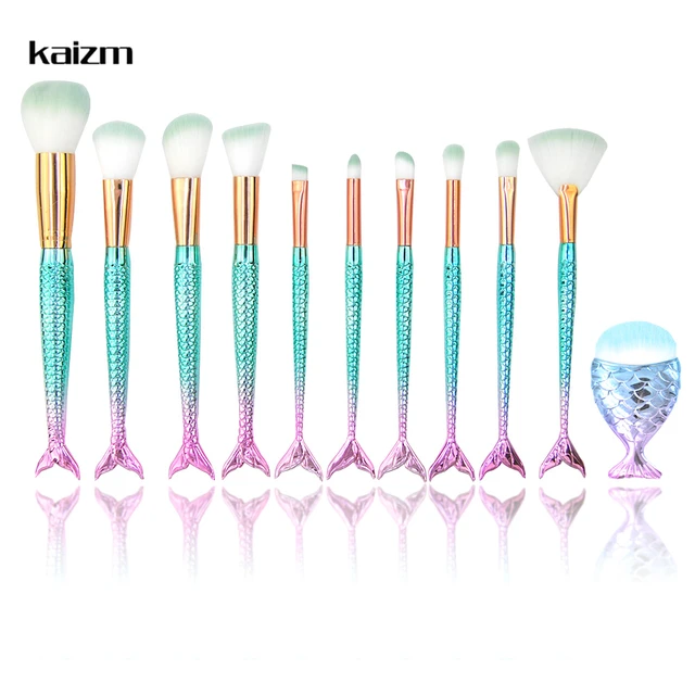 Us 3 98 Kaizm Mermaid Makeup Brushes Set Foundation Lip Eye Powder Brush Cosmetic Beauty Tool Sereia Brush Fishtail Make Up Brushes Kit In Eye
