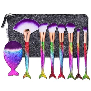 Mermaid Makeup Brushes Sets Cyboris 11pcs Mermaid Makeup Cosmetic Brush Set Soft Beauty Brushes Kit Foundation Powder Cream Eyebrow Eyeliner Blush