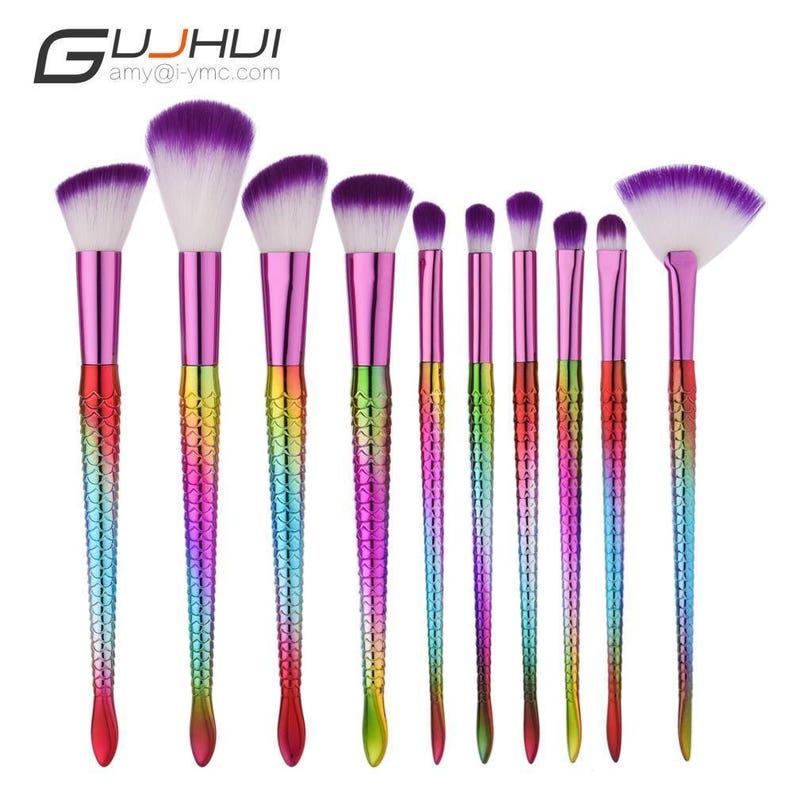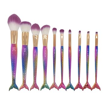 Amazon Com Mermaid Makeup Brush Set Corlorful 10 Pieces Cosmetic