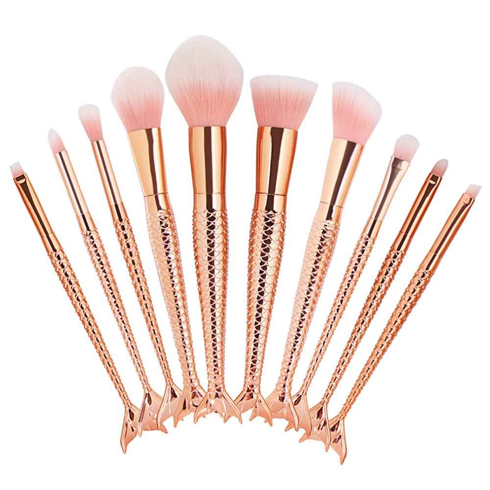Decemter 10pcs Mermaid Makeup Brush Set Rose Gold Eyeshadow