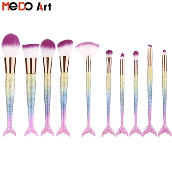 10pcs Set Cosmetic Mermaid Makeup Brushes Tool Kits Power Foundation